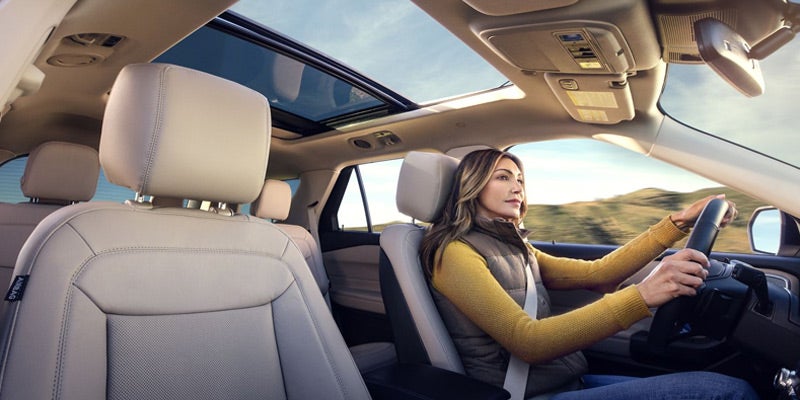 The 2020 Explorer's interior is practical yet luxurious. Inside the XLT, you'll find cloth seating surfaces that are comfortable and easy to clean. Other highlights include second-row captain's chairs and a pass-through second-row console. The Limited features leather upholstery with micro-perforation and distinctive stitching. Heated outboard seats and tri-zone temperature control will keep you and your passengers cozy and relaxed on even the longest trips. Exquisite Silver City accent stitching and bold ST badging feature throughout the ST's cabin. The Platinum offers tri-diamond perforated leather seating surfaces and a state-of-the-art Bang & Olufsen audio system. Your passengers will appreciate the stunning views and fresh breezes provided by the twin-panel moonroof.
