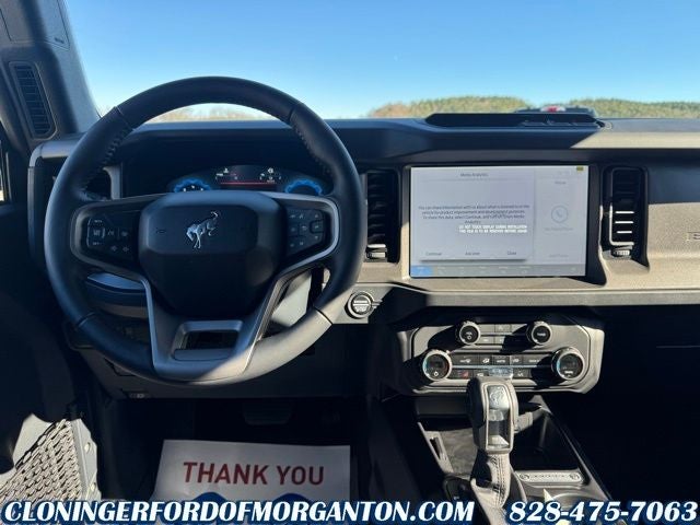 Carbonized Gray Metallic 2025 Ford Bronco Big Bend 2-Door Intelligent Access w/Lock/Unlock, 4.46 Axle Ratio, Ambient Footwell Lighting, Auto High-beam Headlights, BLIS Blind Spot Information System, Carbonized Gray Molded-In-Color Hard Top, Connected Navigation, Dr & Pass Illuminated Sliding Visor Vanity Mirrors, Dual Smart Charging USB Ports, Dual-Zone Electronic Automatic Temperature Control, Electronic Stability Control, Equipment Group 222A Mid Package, Exterior Parking Camera Rear, Front Row Heated Seats, Fully automatic headlights, Hard Top Sound Deadening Headliner, Power Outlet - Back Side of Center Floor Console, Rear Parking Sensors, Rear-View Camera, Rear-Window Defroster & Washer, Side Step, SiriusXM w/360L, SYNC 4, Wheels: 17 Carbonized Gray-Painted Aluminum. 4WD 10-Speed Automatic 2.3L EcoBoost I-4