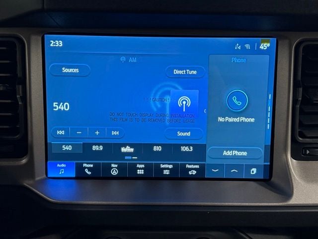 2025 Ford Bronco Outer Banks *4X4/4WD/AWD*, *APPLE CARPLAY*, *BACKUP CAMERA*, *Bluetooth®*, *FACTORY WARRANTY*, *FORD SYNC*, *LEATHER SEATS*, *PUSH BUTTON START/STOP*, *SIRIUS/XM RADIO*, Equipment Group 312A Mid Package, Navigation system: Connected Navigation.