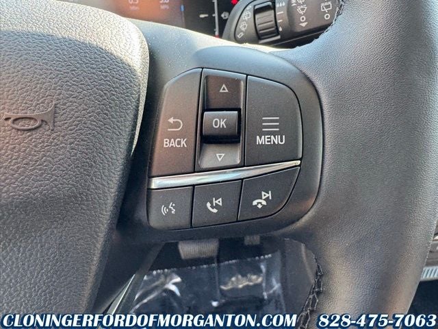 Ford Connectivity Package (1-Year Included), Internet access capable: 5G Modem - Ford Connectivity Package, AM/FM radio: SiriusXM with 360L, Automatic temperature control, Remote keyless entry, Steering wheel mounted audio controls, 4-Wheel Disc Brakes, 6 Speakers, ABS brakes, Air Conditioning, Alloy wheels, AM/FM Stereo, Apple CarPlay/Android Auto, Auto High-beam Headlights, Auto-dimming Rear-View mirror, Brake assist, Compass, Delay-off headlights, Driver door bin, Driver vanity mirror, Dual front impact airbags, Dual front side impact airbags, Electronic Stability Control, Emergency communication system: SYNC 4 911 Assist, Exterior Parking Camera Rear, Four wheel independent suspension, Front anti-roll bar, Front Bucket Seats, Front Center Armrest, Front Driver/Passenger Seat Back Map Pockets, Front dual zone A/C, Front fog lights, Front reading lights, Fully automatic headlights, Heated door mirrors, Heated front seats, Heated steering wheel, Illuminated entry, Knee airbag, Low tire pressure warning, Memory seat, Occupant sensing airbag, Outside temperature display, Overhead airbag, Overhead console, Panic alarm, Passenger door bin, Passenger vanity mirror, Power door mirrors, Power driver seat, Power passenger seat, Power steering, Power windows, Radio data system, Rear anti-roll bar, Rear Parking Sensors, Rear reading lights, Rear seat center armrest, Rear window defroster, Rear window wiper, Security system, SiriusXM with 360L, SiriusXM with 360L (3-Year Plan), Speed control, Speed-sensing steering, Speed-Sensitive Wipers, Split folding rear seat, SYNC 4 with Enhanced Voice Recognition, Tachometer, Telescoping steering wheel, Tilt steering wheel, Traction control, Trip computer, Variably intermittent wipers, and Wheels: 18 Ebony Black.