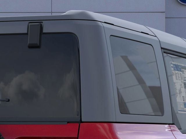 Equipment Group 222A Mid Package: 17" Carbonized Gray-Painted Aluminum Wheel; Rear Parking Sensors; Pro Power Onboard - 400W; Dual Smart Charging USB Ports; 2.3L EcoBoost I-4 Engine; Front Row Heated Seats; Driver and Front Passenger Illuminated Sliding Visor Vanity Mirrors; AM/FM Stereo; Dual-Zone Electronic Automatic Temperature Control; Connected Navigation; P255/75R17 A/T Tires; Ambient Footwell Lighting; Remote Start System; Cloth Bucket Seats; 2-Door Intelligent Access with Lock/unlock. Ford Co-Pilot360: Auto High-Beam Headlamps; Rear View Camera; Pre-Collision Assist with Automatic Emergency Braking; Blind Spot Information System (BLIS); Lane-Keeping System. Carbonized Gray Molded-In-color Hard Top. Hard Top Sound Deadening Headliner. Ruby Red Met Tinted CC. Wheel Lock Kit. On-Road Assistance Kit. First Aid Kit. **Equipment listed is based on original vehicle build and subject to change. Please confirm the accuracy of the included equipment by calling the dealer prior to purchase.**