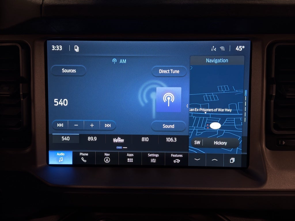 Designed for convenience and peace of mind, this Ford Bronco includes remote start for quick cabin comfort and rear parking sensors plus a back-up camera to make parking and tight maneuvers effortless. Whether navigating city streets or off-road routes, the responsive V6 power and robust 4WD system deliver dependable traction and control.