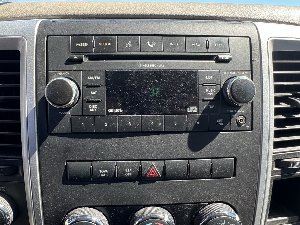 Protection Group (Tow Hooks), Quick Order Package 25G SLT, HEMI 5.7L V8 Multi Displacement VVT, 4WD, 115V Auxiliary Power Outlet, 17 x 7 Aluminum Wheels, 20 x 9 Chrome Clad Aluminum Wheels, 4-Wheel Disc Brakes, 6 Speakers, ABS brakes, Air Conditioning, Alloy wheels, AM/FM CD MP3 Radio, AM/FM radio: SIRIUS, AM/FM/CD/DVD/HDD/MP3, Anti-Spin Differential Rear Axle, Brake assist, Bumpers: chrome, CD player, Cloth 40/20/40 Bench Seat, Compass, Delay-off headlights, Driver door bin, Dual front impact airbags, Dual Rear Exhaust, Electronic Stability Control, Electronically Controlled Throttle, Folding Flat Load Floor Storage, Front anti-roll bar, Front Center Armrest, Front Center Seat Cushion Storage, Front reading lights, Front wheel independent suspension, Fully automatic headlights, Heated door mirrors, Heated Front Seats, Heated Steering Wheel, Heavy-Duty Engine Cooling, Hemi Badge, Illuminated entry, Low tire pressure warning, Manual Adjust Seats, Next Generation Engine Controller, Outside temperature display, Overhead airbag, Overhead console, Panic alarm, ParkSense Rear Park Assist System, Passenger door bin, Passenger vanity mirror, Power door mirrors, Power Lumbar Adjust, Power steering, Power windows, Radio data system, Rear 60/40 Split Folding Seat, Rear anti-roll bar, Rear Folding Seat, Rear step bumper, Remote keyless entry, Speed control, Tachometer, Tilt steering wheel, Traction control, Trip computer, Uconnect Hands-Free Communication, Variably intermittent wipers, and Voltmeter.