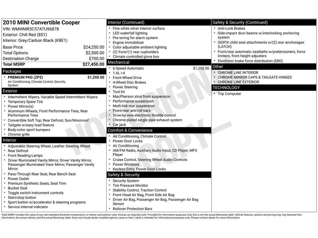 - Vehicle Name: MINI Cooper Convertible