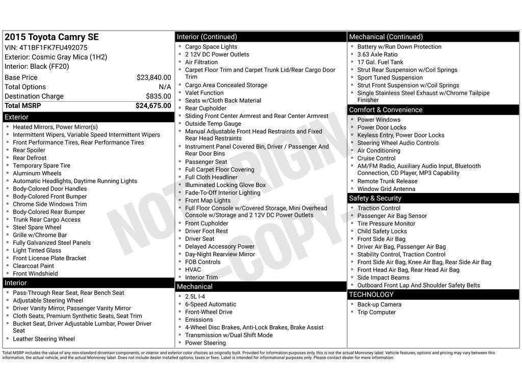 - Vehicle Name: Toyota Camry