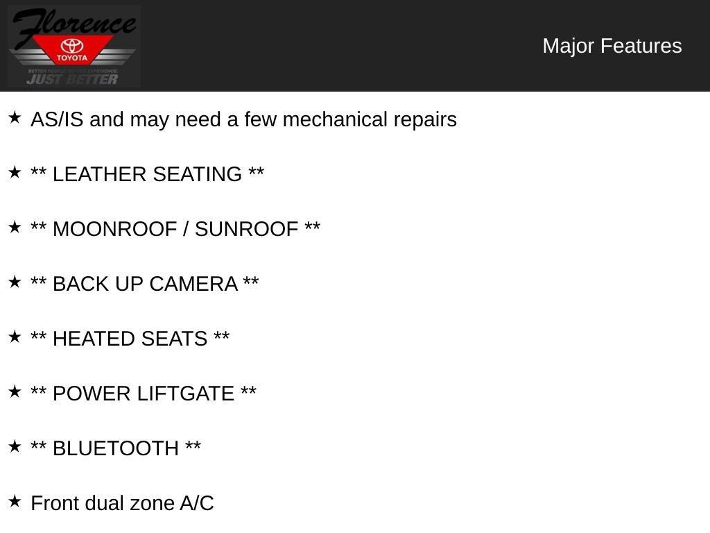 2016 Toyota RAV4 SE FWD – Reliable SUV in Florence, SC Looking for a dependable, fuel-efficient SUV in Florence, SC? This 2016 Toyota RAV4 SE with a 2.5L 4-cylinder gasoline engine and front-wheel drive delivers the practicality and comfort you need for daily commutes and weekend getaways. Well-maintained and ready for the road, this Toyota RAV4 blends Toyota's reputation for longevity with sporty SE styling. Key features include a Back-Up Camera for safer reversing, Automatic Climate Control to keep the cabin comfortable year-round, and Leather Seats that add a touch of luxury and easy maintenance. Hands Free Bluetooth® connectivity lets you make calls and stream music without taking your hands off the wheel, improving convenience and safety. The interior offers roomy seating and cargo versatility, making it ideal for families, students, and professionals. The efficient 4-cylinder engine provides a balanced mix of performance and economy, while the Toyota RAV4's thoughtful engineering ensures a smooth, confident ride. Located in Florence, SC, this Toyota RAV4 SE is a great choice if you want a trustworthy pre-owned SUV with modern comforts and practical tech. Contact us to schedule a test drive and experience the comfortable ride, solid build quality, and user-friendly features that make the Toyota RAV4 a top pick in the compact SUV segment.