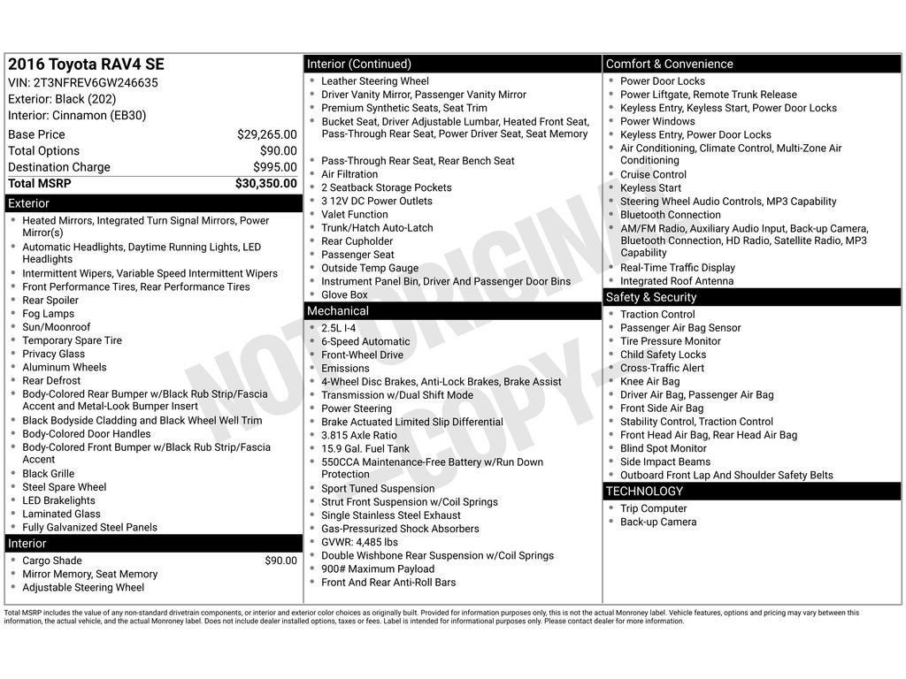 Bluetooth® technology is built into it, keeping your hands on the steering wheel and your focus on the road. This unit offers Automatic Climate Control for personalized comfort. Protect this unit from unwanted accidents with a cutting edge backup camera system. The leather seats in this unit are a must for buyers looking for comfort, durability, and style. Enjoy the convenience of the power liftgate on this small suv. It has a 4 Cyl, 2.5L high output engine. Maintaining a stable interior temperature in this model is easy with the climate control system. Front wheel drive on this 2016 Toyota RAV4 gives you better traction and better fuel economy. It has an elegant black exterior finish. This 2016 Toyota RAV4 has fog lights for all weather conditions. It is equipped with a gasoline engine. The high efficiency automatic transmission shifts smoothly and allows you to relax while driving. Help alleviate lower back pain with the driver seat lumbar support in the vehicle.