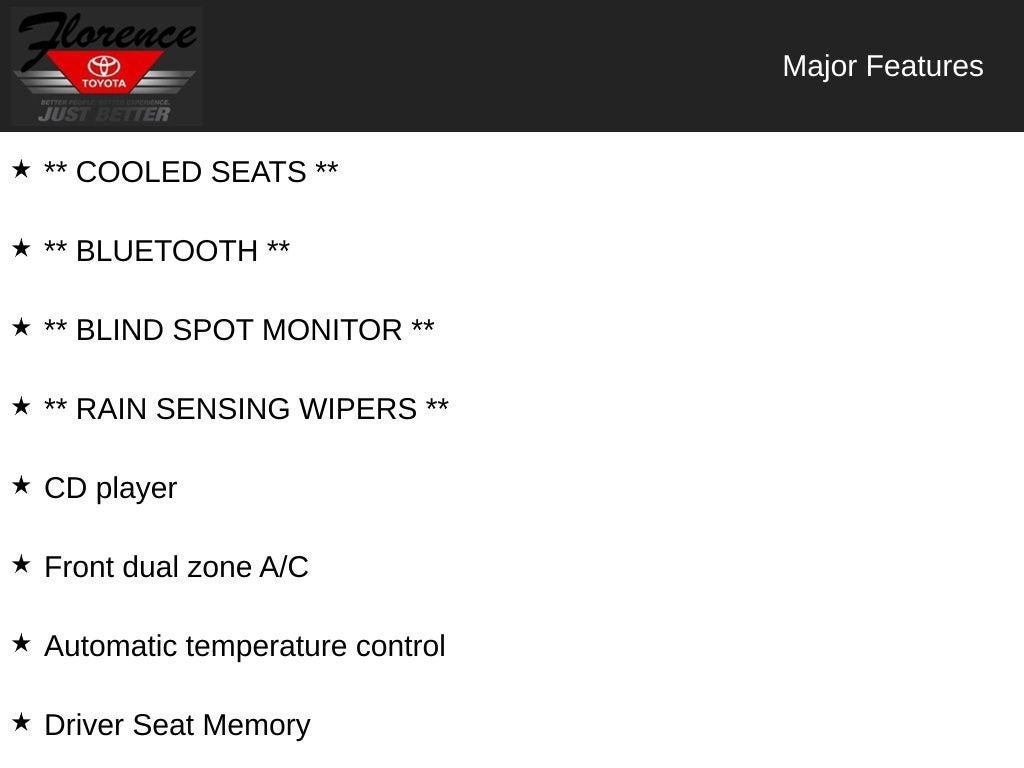Luxury Package with Wood Trim: Synthetic Leather Shift Lever; Wood Trim; Driver Seat Memory; Embossed Leather Seat Trim; Power Tilt and Telescopic Steering Wheel with Memory; Heated and Ventilated Front Seats; Heated Outside Mirrors with Memory. Accessory Package 2: Carpet Trunk Mat; Rear Bumper Applique; Alloy Wheel Locks; Cargo Net; Key Gloves. Navigation System Package. Twin Projector bi-LED Headlamps. Blind Spot Monitor with Rear Cross Traffic Alert. Front and Rear Intuitive Parking Assist. Heated Wood and Leather Trimmed Steering Wheel. One-Touch Power Trunk. Power Rear Sunshade. Carpet Trunk Mat. Rear Bumper Applique. Alloy Wheel Locks. Cargo Net. 17" X 7" JJ Split 10-Spoke High Gloss Aluminum Alloy. Key Gloves. **Equipment listed is based on original vehicle build and subject to change. Please confirm the accuracy of the included equipment by calling the dealer prior to purchase.**