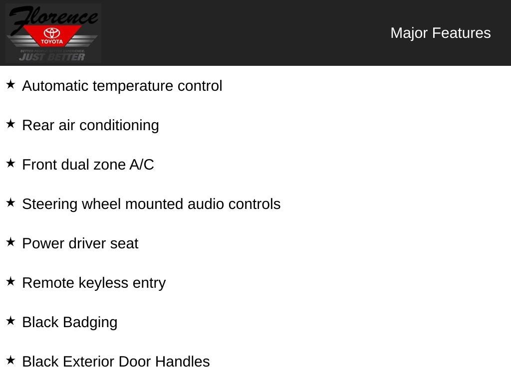At Florence Toyota come see how our USED CARS are JUST BETTER . We offer the following benefits: Lifetime Power Train (Some exclusions apply), 1st Year Maintenance, $500 Additional Trade In Appraisal, 72 Hour Vehicle Exchange Program, Yearly Vehicle Appraisal & Safety Inspection, VIP Loyalty Program, Routine Express Service, Courtesy Service Shuttle, Express Buying Service. Also, as an added benefit we will buy your vehicle even if you don't buy ours!! Call today (866)830-0793or visit us at www.florencetoyota.com *Customer must trade-in a vehicle to receive $1,000 Trade Assist credit that is included in the online price. **Financing must be provided by a third-party lender using this dealership’s assistance for Customer to receive $1,000 Financing Assist credit that is included in the online price. See dealer for complete details.