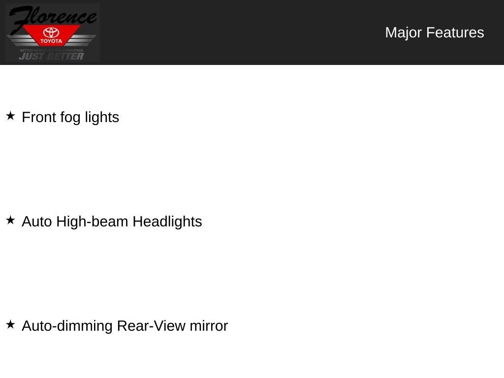 At Florence Toyota, come see how our USED CARS are JUST BETTER. We offer the following benefits: Lifetime Power Train (Some exclusions apply), 1st Year Maintenance, $500 Additional Trade In Appraisal, 72 Hour Vehicle Exchange Program, Yearly Vehicle Appraisal & Safety Inspection, VIP Loyalty Program, Routine Express Service, Courtesy Service Shuttle, Express Buying Service. Also, as an added benefit we will buy your vehicle even if you don't buy ours!! Call today (866)830-0793 or visit us at www.florencetoyota.com *Customer must trade-in a vehicle to receive $1,000 Trade Assist credit that is included in the online price. **Financing must be provided by a third-party lender using this dealership's assistance for Customer to receive $1,000 Financing Assist credit that is included in the online price. See dealer for complete details.