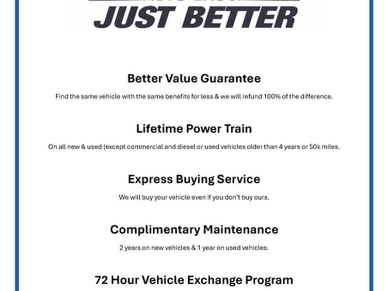 At Cloninger Ford of Morganton come see how we are your JUST BETTER dealership. We offer the following benefits: Better Value Guarantee,1st Year Maintenance, $500 Additional Trade In Appraisal, 72 Hour Vehicle Exchange Program, Yearly Vehicle Appraisal & Safety Inspection, VIP Loyalty Program, Routine Express Service, Courtesy Service Shuttle, Express Buying Service. Also, as a added benefit we will buy your vehicle even if you don't buy ours!! Call today (800)951-2277or visit us at www.cloningerfordofmorganton.com All pricing plus $799 appearance protection package and $899 documentation charge. All pricing includes discounts for dealer arranged financing.