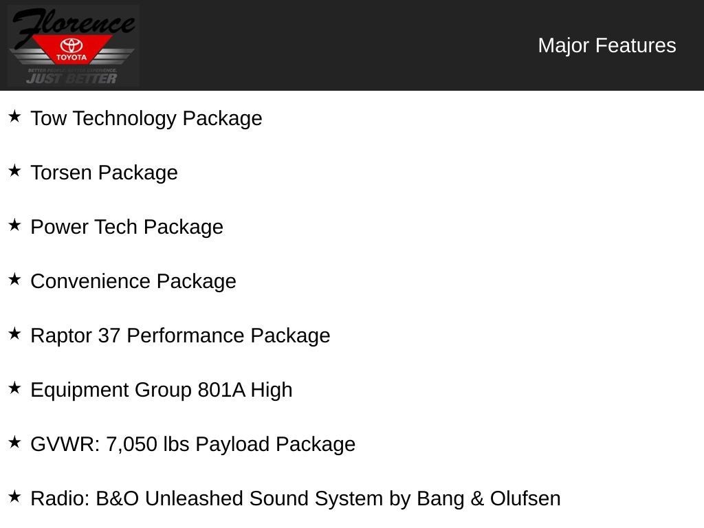 Designed to conquer the toughest terrain, this Raptor is equipped with the Raptor 37 Performance Package, featuring unique styling cues, sport-tuned shocks, and bead-lock capable wheels wrapped in massive 37-inch all-terrain tires. The powerful 3.5L EcoBoost V6 engine and 10-speed automatic transmission provide the perfect balance of power and efficiency, delivering an impressive 14 mpg city and 18 mpg highway.