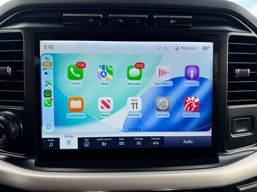 Ford Co-Pilot360 Assist 2.0. Tow Technology Package: Integrated Trailer Brake Controller; 360 Degree Camera; Pro Trailer Backup Assist. Equipment Group 302A High: Class IV Trailer Hitch Receiver; Electronic 10-Speed Automatic Transmission; Leather-Wrapped Steering Wheel; Intelligent Access with Push Button Start; 10-Way Power Driver and Passenger Seats; Onboard 400W Outlet; LED Sideview Mirror Spotlights; Power Glass Heated Sideview Mirrors; LED Box Lighting with Zone Lighting; 8" Productivity Screen in Instrument Cluster; LED Reflector Headlamps; Heated Front Seats; Rear Under-Seat Storage. XLT Chrome Appearance Package: Chrome Single-Tip Exhaust; Chrome Door and Tailgate Handles with Body-Color Bezel; 2-Bar Style Grille with Chrome 2 Minor Bars. 20" Chrome-Like PVD Wheels. 360 Degree Camera. B&O Sound System by Bang and Olufsen. Extended Range 36 Gallon Fuel Tank. Power-Sliding Rear Window. Onboard 400W Outlet. Cloth 40/console/40 Front Seats. Integrated Trailer Brake Controller. Class IV Trailer Hitch Receiver. Power Glass Heated Sideview Mirrors. LED Sideview Mirror Spotlights. Tray Style Floor Liner. LED Box Lighting with Zone Lighting. BoxLink. SecuriCode Drivers Side Keyless-Entry Keypad. **Equipment listed is based on original vehicle build and subject to change. Please confirm the accuracy of the included equipment by calling the dealer prior to purchase.**