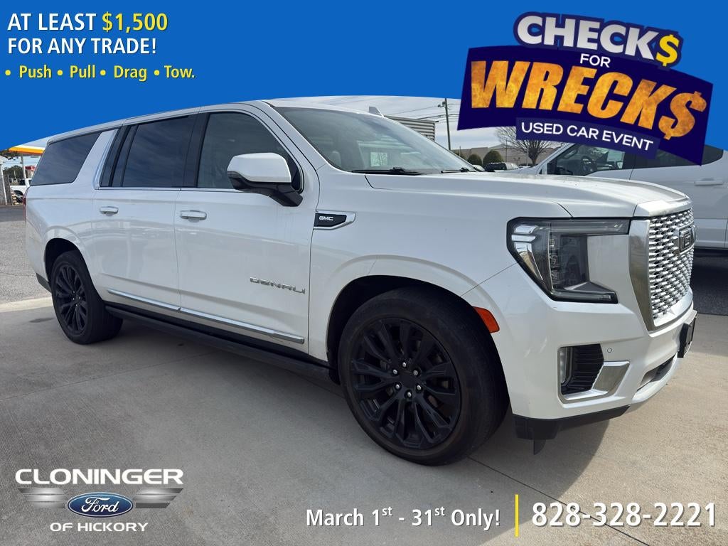For sale in Hickory, NC: a pristine 2021 GMC Yukon XL 1500 Denali with powerful 4WD and a V8 6.2L gasoline engine — the best price on the market for this luxury-capability SUV. This GMC Yukon XL Denali combines commanding performance with premium comfort and advanced technology, ideal for families, towing, and long-distance travel. Key features include Remote Start for convenience, Hands-Free Bluetooth® for safe calls and streaming, Lane Keep Assist to support confident highway driving, Android Auto for seamless smartphone integration, and a Back-Up Camera for easier parking and trailer hookup. The roomy XL body delivers three rows of seating and exceptional cargo capacity, while Denali trim provides upscale leather, refined interior finishes, and advanced safety systems. This GMC Yukon XL is meticulously maintained and ready for immediate test drives in Hickory, NC. With 4WD and the 6.2L V8, expect strong towing capability and smooth highway performance. Whether you need daily driver reliability or weekend adventure readiness, this vehicle meets both needs with style. Don't miss this opportunity — competitively priced for quick sale and offering unmatched value for a Denali-equipped GMC Yukon XL. Contact us today to schedule a viewing or test drive and secure the best price on this 2021 GMC Yukon XL 1500 Denali in Hickory, NC.