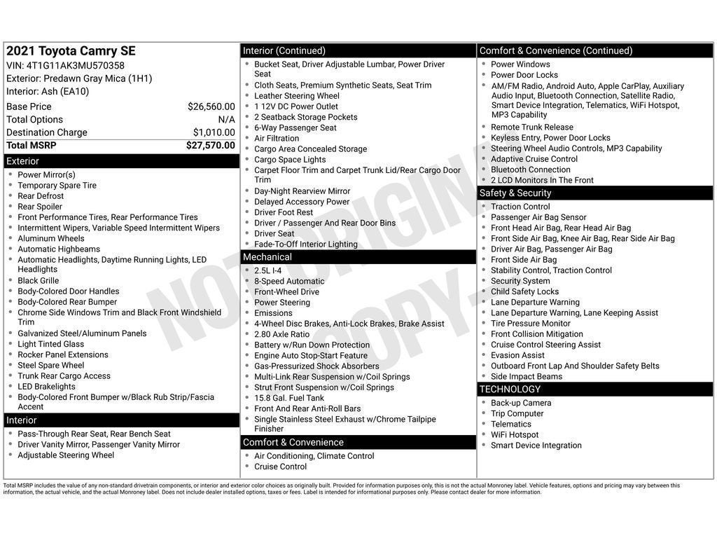 - Vehicle Name: Toyota Camry