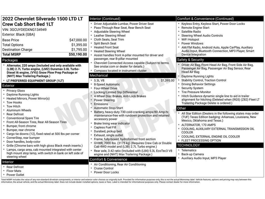 - Vehicle Name: Chevrolet Silverado 1500 LTD