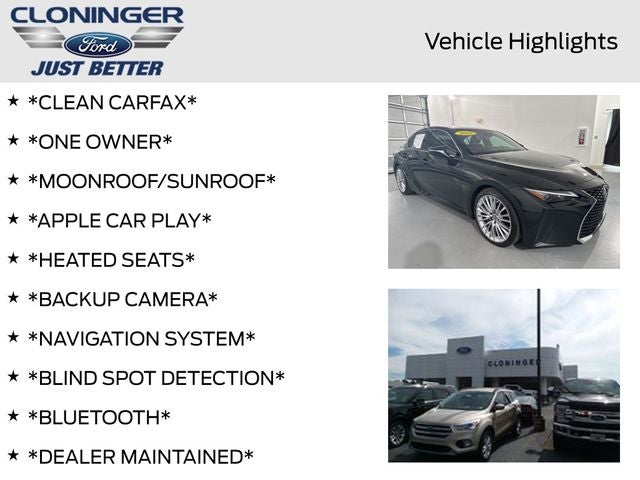 *CLEAN CARFAX*, *ONE OWNER*, *MOONROOF/SUNROOF*, *APPLE CAR PLAY*, *HEATED SEATS*, *BACKUP CAMERA*, *NAVIGATION SYSTEM*, *BLIND SPOT DETECTION*, *Bluetooth®*, *DEALER MAINTAINED*, *LOCALLY OWNED*, *PUSH BUTTON START/STOP*, *REVERSE SENSING*, *SIRIUS/XM SATELLITE RADIO*, WWW.CLONINGERTOYOTA.COM.