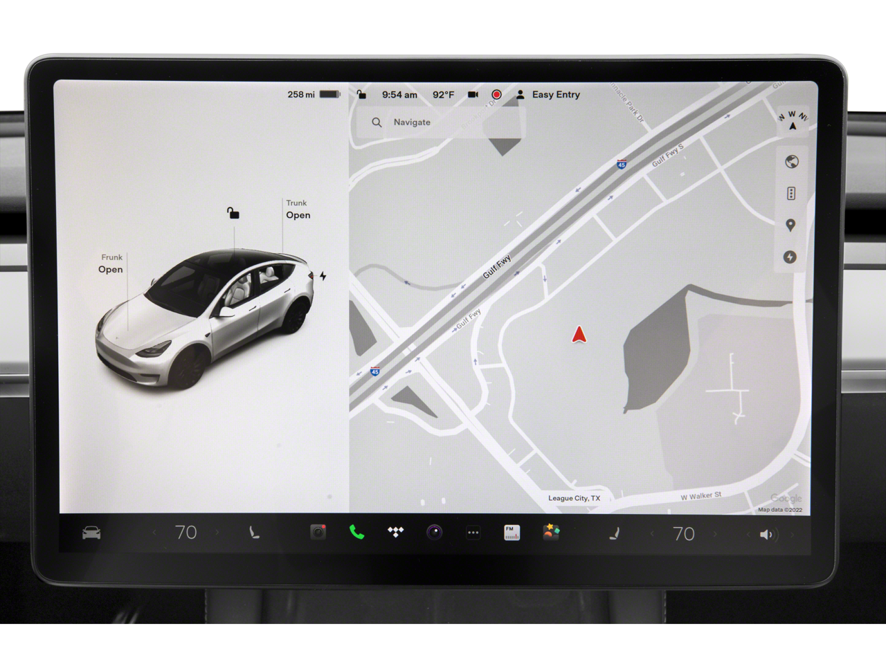 Protect this vehicle from unwanted accidents with a cutting edge backup camera system. You'll never again be lost in a crowded city or a country region with the navigation system on this 2022 Tesla Model Y . The Tesla Model Y is pure luxury with a heated steering wheel. Our dealership has already run the CARFAX report and it is clean. A clean CARFAX is a great asset for resale value in the future. The leather seats in this 2022 Tesla Model Y are a must for buyers looking for comfort, durability, and style. Good News! This certified CARFAX 1-owner vehicle has only had one owner before you. Enjoy the convenience of the power liftgate on this unit. The vehicle has a Electric Motor high output engine. Maintaining a stable interior temperature in this model is easy with the climate control system. Conquer any rainy, snowy, or icy road conditions this winter with the all wheel drive system on this mid-size suv.