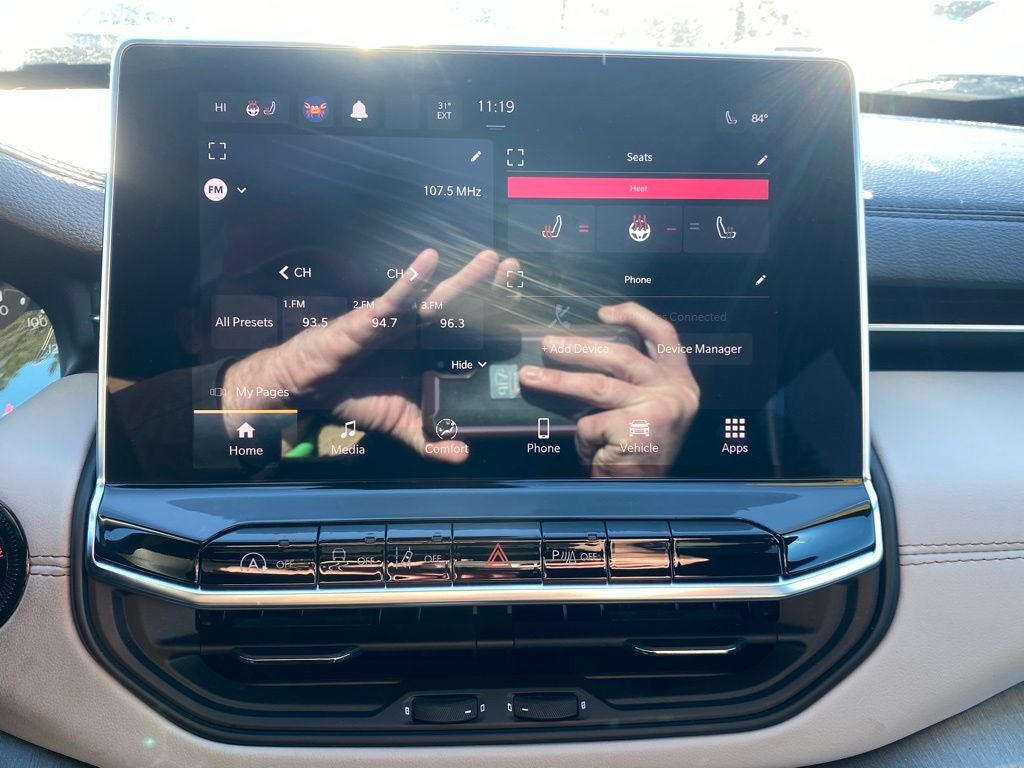 Indulge in the comfort and convenience of the Sun and Sound Group, which includes a Premium Alpine Speaker System and a Power Front/Fixed Rear Full Sunroof. The striking Diamond Black Crystal Pearlcoat exterior exudes a bold and sophisticated presence, perfectly complemented by the Black interior.