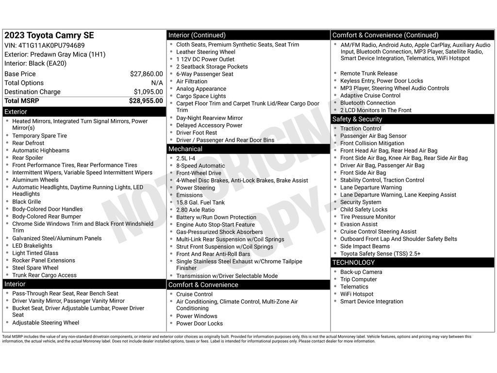 - Vehicle Name: Toyota Camry
