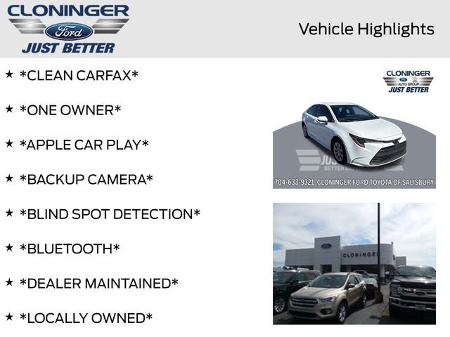 *CLEAN CARFAX*, *ONE OWNER*, *APPLE CAR PLAY*, *BACKUP CAMERA*, *BLIND SPOT DETECTION*, *Bluetooth®*, *DEALER MAINTAINED*, *LOCALLY OWNED*, WWW.CLONINGERTOYOTA.COM.