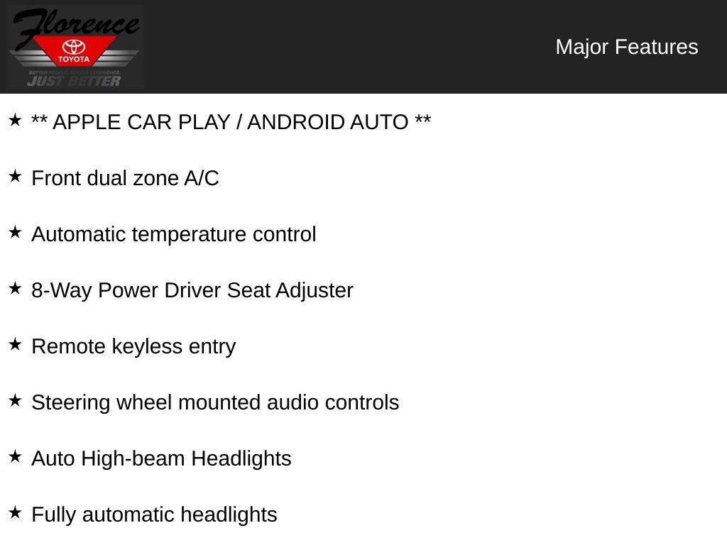 At Florence Toyota, come see how our USED CARS are JUST BETTER. We offer the following benefits: Lifetime Power Train (Some exclusions apply), 1st Year Maintenance, $500 Additional Trade In Appraisal, 72 Hour Vehicle Exchange Program, Yearly Vehicle Appraisal & Safety Inspection, VIP Loyalty Program, Routine Express Service, Courtesy Service Shuttle, Express Buying Service. Also, as an added benefit we will buy your vehicle even if you don't buy ours!! Call today (866)830-0793 or visit us at www.florencetoyota.com *Customer must trade-in a vehicle to receive $1,000 Trade Assist credit that is included in the online price. **Financing must be provided by a third-party lender using this dealership's assistance for Customer to receive $1,000 Financing Assist credit that is included in the online price. See dealer for complete details.