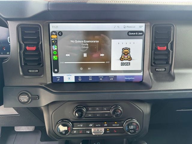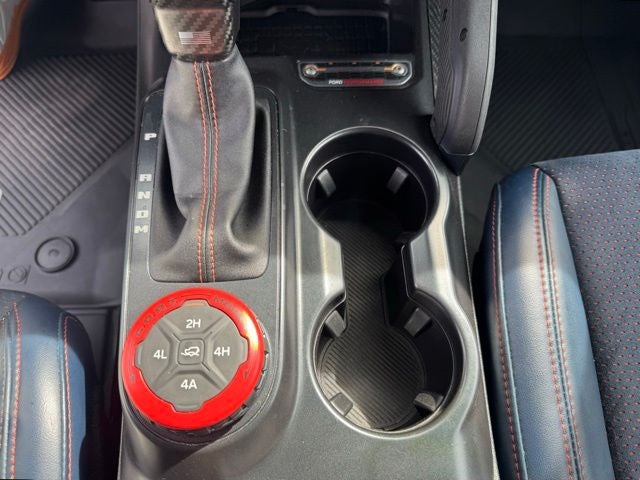 Step inside the Bronco Raptor and experience the unparalleled comfort and style. The leather-trimmed and vinyl bucket seats, with 10-way power adjustability for the driver and 8-way for the front passenger, ensure a tailored fit. The second-row armrest with beverage holders and the front seat back MOLLE strap system add to the vehicle's versatility and convenience.