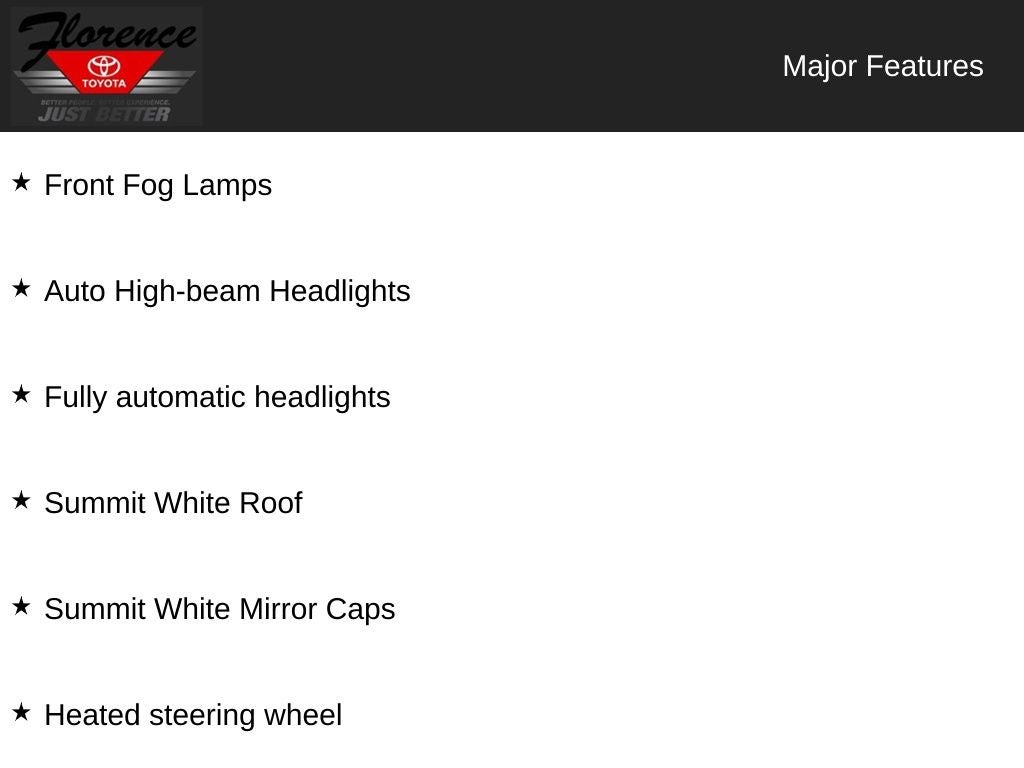 At Florence Toyota, we're committed to providing our customers with the best possible experience. Come see how our USED CARS are JUST BETTER. We offer the following benefits: Lifetime Power Train (Some exclusions apply), 1st Year Maintenance, $500 Additional Trade In Appraisal, 72 Hour Vehicle Exchange Program, Yearly Vehicle Appraisal & Safety Inspection, VIP Loyalty Program, Routine Express Service, Courtesy Service Shuttle, Express Buying Service. Also, as an added benefit we will buy your vehicle even if you don't buy ours!! Call today (866)830-0793 or visit us at www.florencetoyota.com *Customer must trade-in a vehicle to receive $1,000 Trade Assist credit that is included in the online price. **Financing must be provided by a third-party lender using this dealership's assistance for Customer to receive $1,000 Financing Assist credit that is included in the online price. See dealer for complete details.