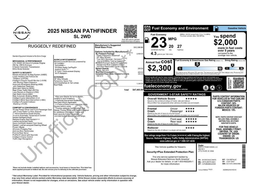 Located in Florence, SC, this 2025 Nissan Pathfinder SL is ready for a test drive. Don't miss your chance to own a low-mileage, feature-packed SUV at a fantastic price. Contact us today to schedule a viewing or request more information.
