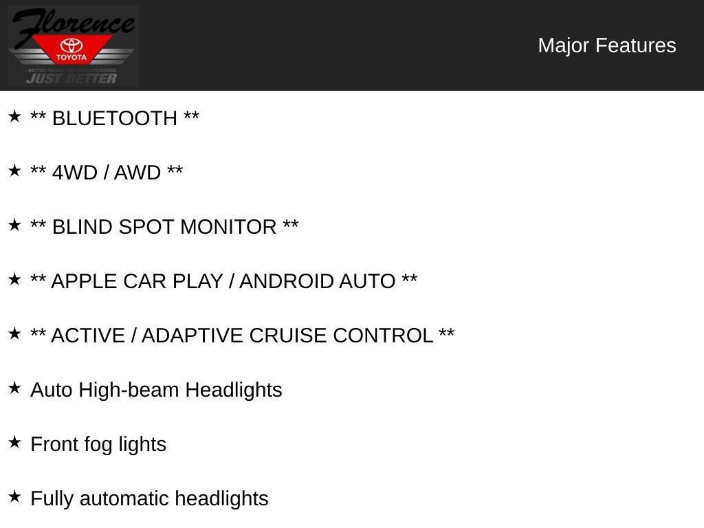 Discover the rugged versatility of this 2025 Toyota Tacoma SR5, now available in Florence, SC. With only 9,345 miles, this Toyota Tacoma offers low mileage and ready-for-adventure reliability. Powered by a responsive 4-cylinder 2.4L gasoline engine and equipped with 4WD, it delivers confident handling on highways and off-road trails alike. Inside, the Toyota Tacoma SR5 blends comfort and connectivity. Android Auto and Hands-Free Bluetooth® keep your smartphone seamlessly integrated for navigation, music, and calls while you drive. Stay safe and aware with the Back-Up Camera for confident maneuvering in tight spots. Enjoy added convenience with Remote Start, perfect for warming up or cooling down the cabin before you step in. You'll drive with peace of mind thanks to a CARFAX Clean Report, reflecting a well-maintained vehicle history. The Toyota Tacoma's durable build and thoughtful SR5 features make it an ideal choice for daily commuters, weekend explorers, and anyone who needs a capable, efficient truck. Located in Florence, SC, this Toyota Tacoma is ready for inspection and test drives. Whether you're hauling gear, commuting, or planning an outdoor getaway, this 2025 Toyota Tacoma SR5 offers the modern tech, practical features, and low-mileage condition buyers want. Reach out today to schedule a viewing and experience the dependable performance and refined utility of this standout Toyota Tacoma.